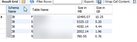 ROUND(((t.data_length + t.index_length) / 1024 / 1024 / 1024), 2) 'Size in GB'