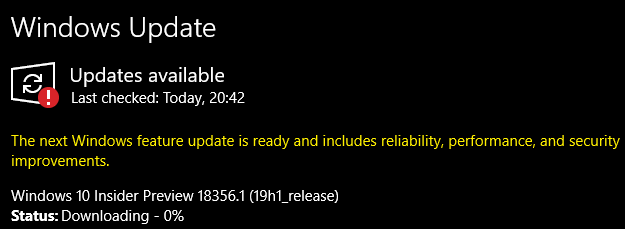 Windows 10 Insider Preview Build 18356.1 (19H1) By shortie2019-03-182019-03-18資訊科技 今日稍早 Windows Update 推這個更新給 shortie, 不過經過測試之後, VMware Workstation 的 Windows 10 虛擬機器, 依舊無法套用這個更新進行測試, 持續等候下一個版本中. Windows 10 Insider Preview 18356.1 (19h1_release) Notification 參考資料 Announcing Windows 10 Insider Preview Build 18356 分享此文: 分享到 X(在新視窗中開啟) X 分享到 Facebook(在新視窗中開啟) Facebook