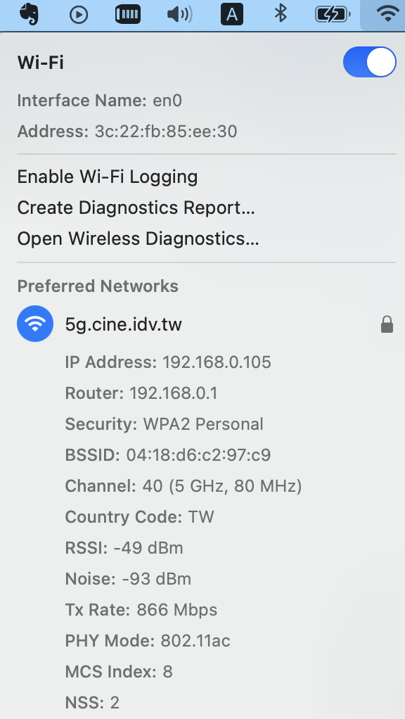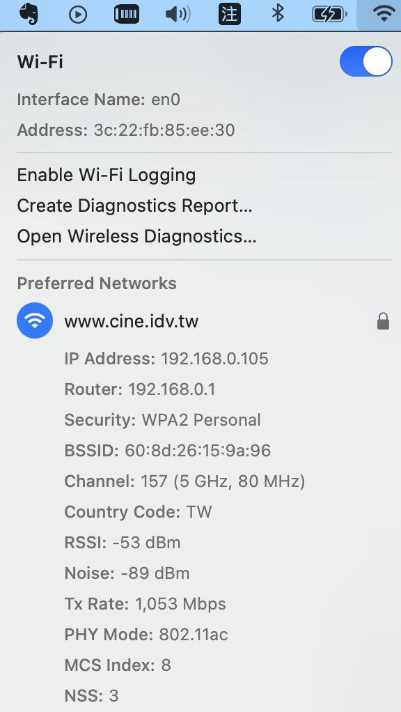 首先, 檢查原先無線分享器的連線品質, 這裡以 macOS Big Sur 為例: