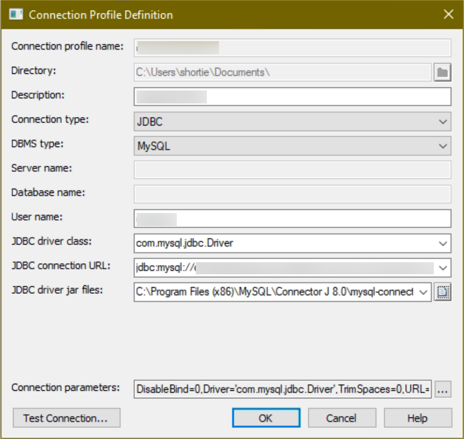 其中最重要的設定就是 JDBC driver jar files: , 它的設定值必須是我們早先安裝的 MySQL Connector/J 的 jar 檔案. 其他的設定就跟尋常的 JDBC 參數設定一樣, 沒有什麼特殊之處. 所有的設定值都就位之後, 我們就可以利用 Test Connection… 按鈕來測試是否可以連線成功.