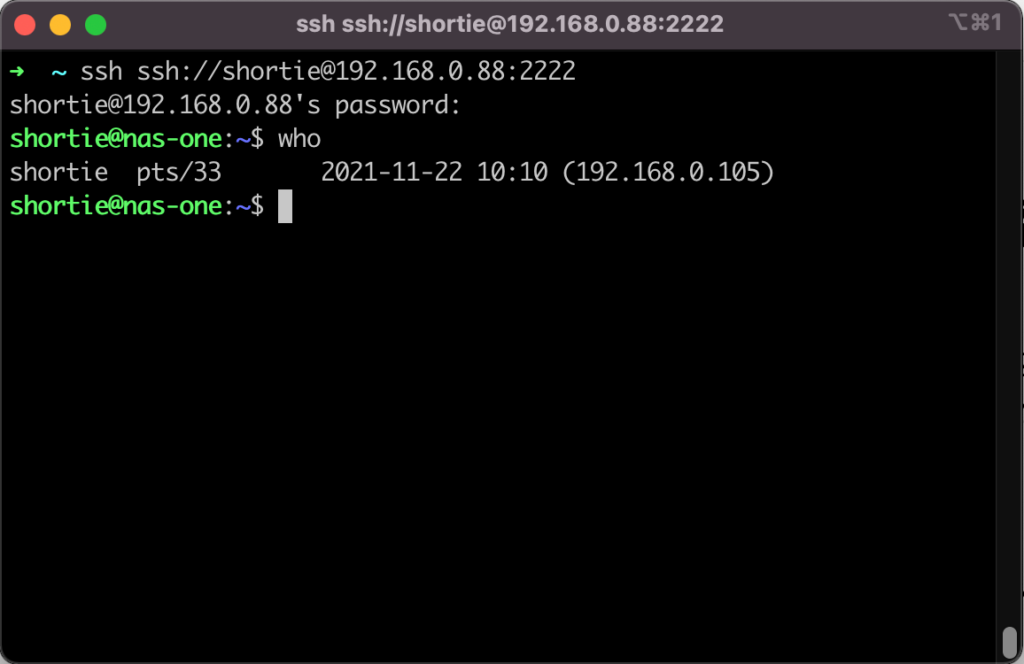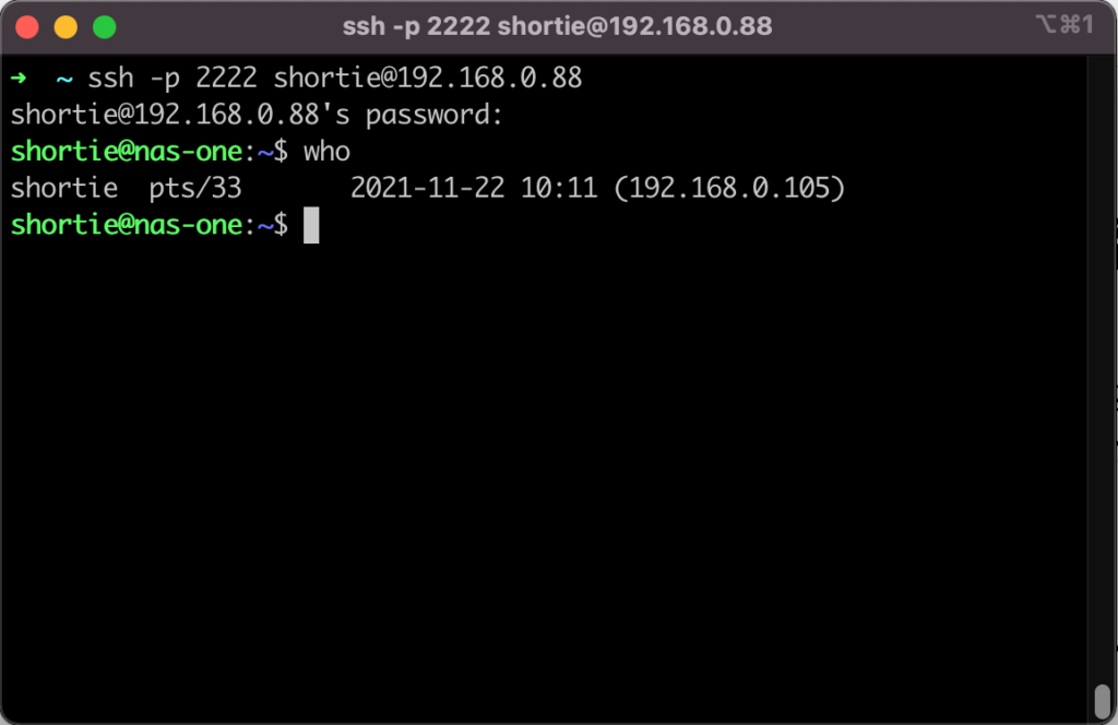 ➜ ~ ssh -p 2222 shortie@192.168.0.88